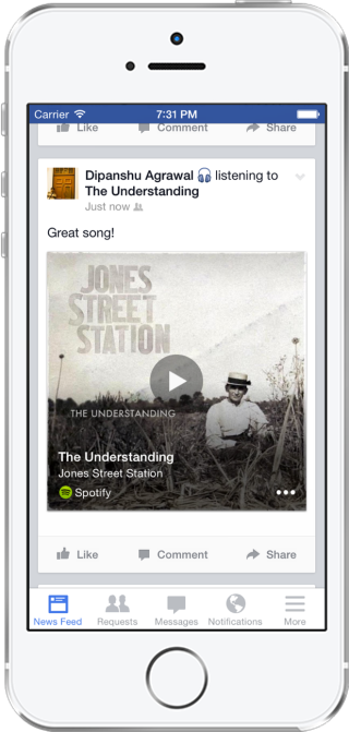Facebook müziğin 15 saniyelik kısmı ile bütün parçanın adını bulan yeni servisi ile kullanıcıların karşısında. Facebook uygulaması üzerinden dinlediğiniz müziği tanımlayabilir bildirim olarak paylaşabilirsiniz.
